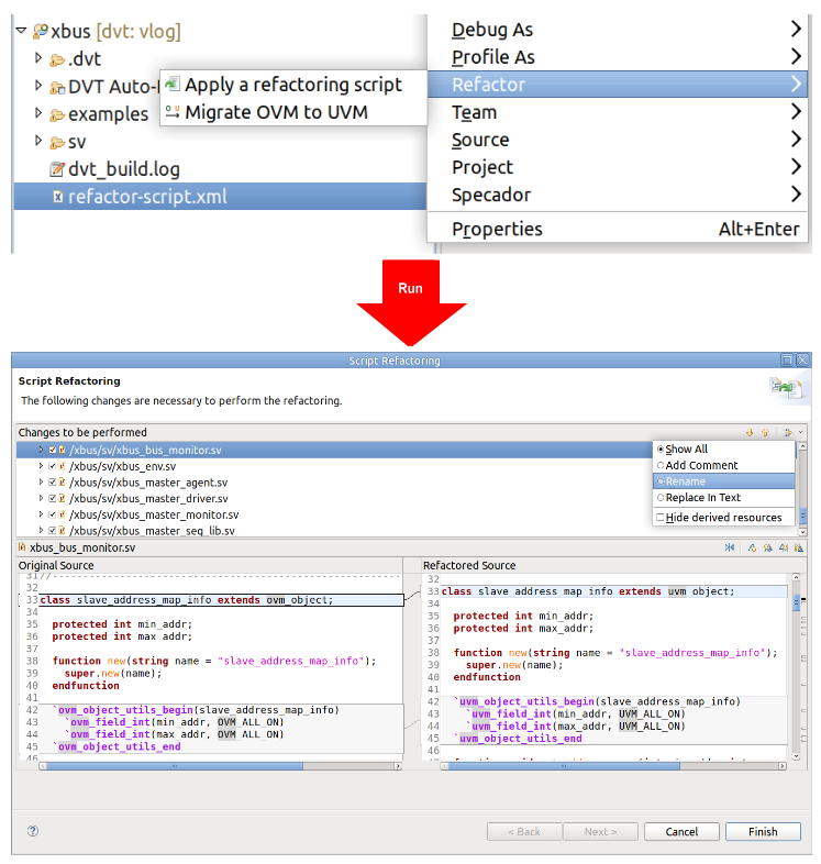 Here’s exactly how you can apply DVT IDE’s code refactoring features if you find yourself in any of the use cases discussed above with your Verilog and SystemVerilog capabilities: